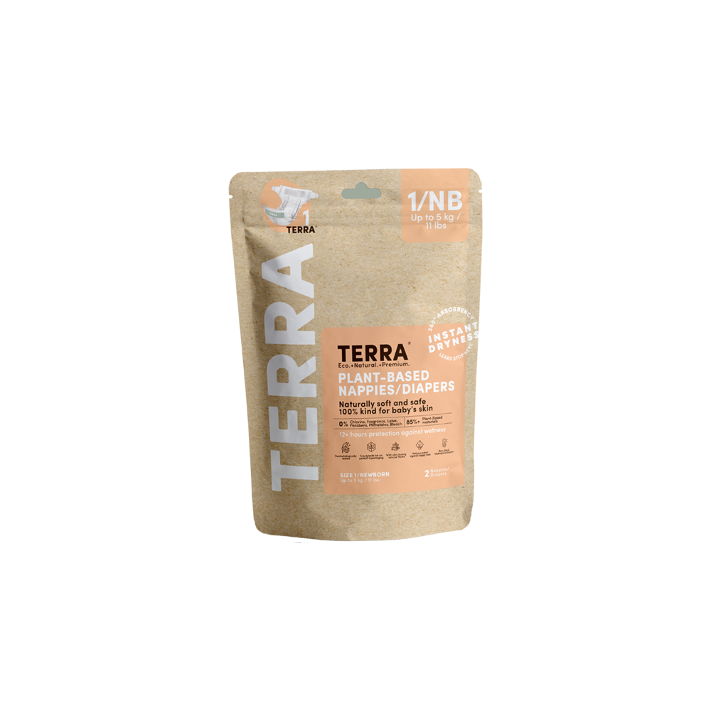 TERRA Diapers are lovingly crafted to give your baby the gentle beginning they deserve. TERRA Diapers are soft, breathable, and ultra-absorbent, keeping your newborn dry and comfortable through every little moment. Made with safe, plant-based materials and dermatologically tested for sensitive skin, they're as gentle as your touch.