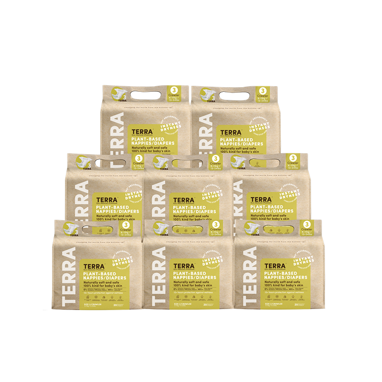 TERRA Crawler Diapers are thoughtfully designed to support your baby's every move. TERRA Diapers are soft, breathable, and ultra-absorbent, keeping your little explorer dry and free to move comfortably all day long. Made with safe, plant-based materials and dermatologically tested for sensitive skin, they offer gentle care through every crawl and giggle.