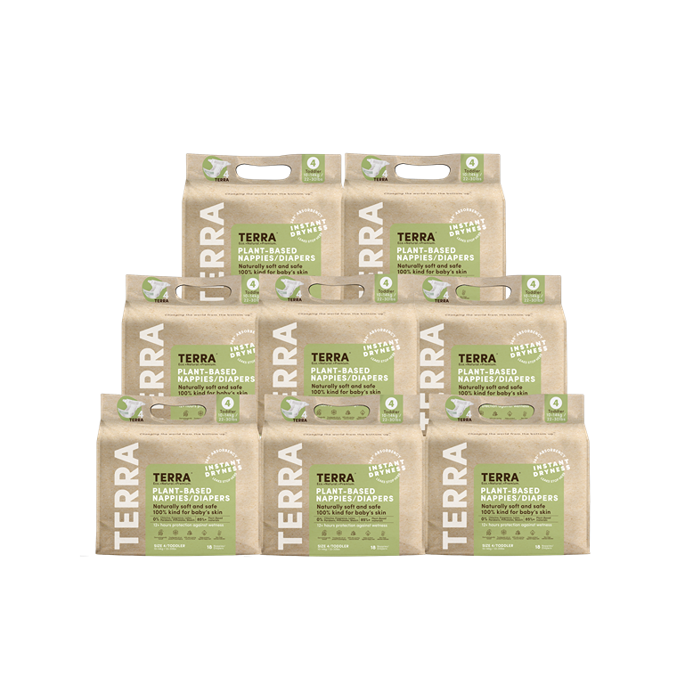 TERRA Toddler Diapers are thoughtfully designed to keep up with your little one's active adventures. TERRA diapers are soft, breathable, and ultra-absorbent, keeping your toddler dry and comfortable as they play, learn, and explore. Made with safe, plant-based materials and dermatologically tested for sensitive skin, they ensure comfort that moves with your child.