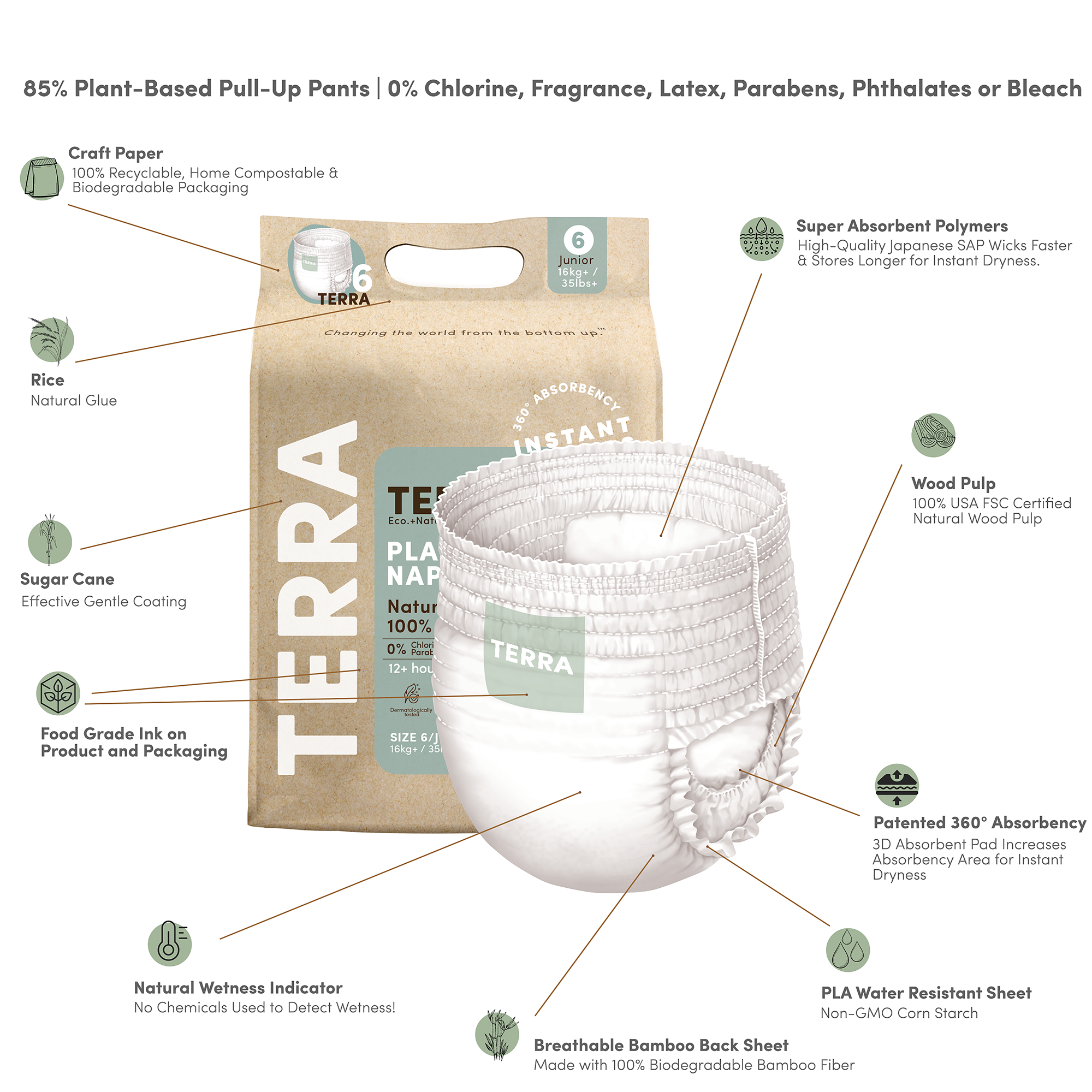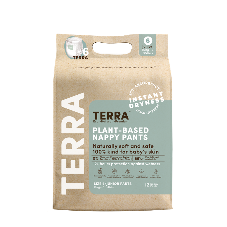 TERRA Junior Training Pants are thoughtfully designed to give your growing child freedom and confidence. With advanced absorbency, breathable comfort, and a flexible fit, they keep your child dry and comfortable through active days and restful nights. Made from safe, plant-based materials and dermatologically tested, they deliver gentle, reliable care at every stage.