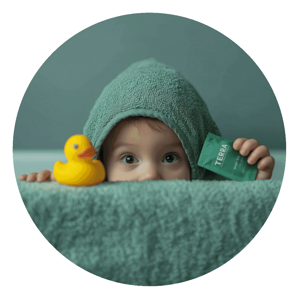 Your baby's eyes are delicate and need extra gentle care. TERRA Baby Eye Wipes are specially designed to gently cleanse and refresh the delicate skin around your baby's eyes while ensuring complete safety and comfort. Formulated with plant-based ingredients, they help remove dirt, discharge, and impurities without irritation, supporting the natural balance of the tear area and keeping your baby's eyes clean, calm, and cared for every day.